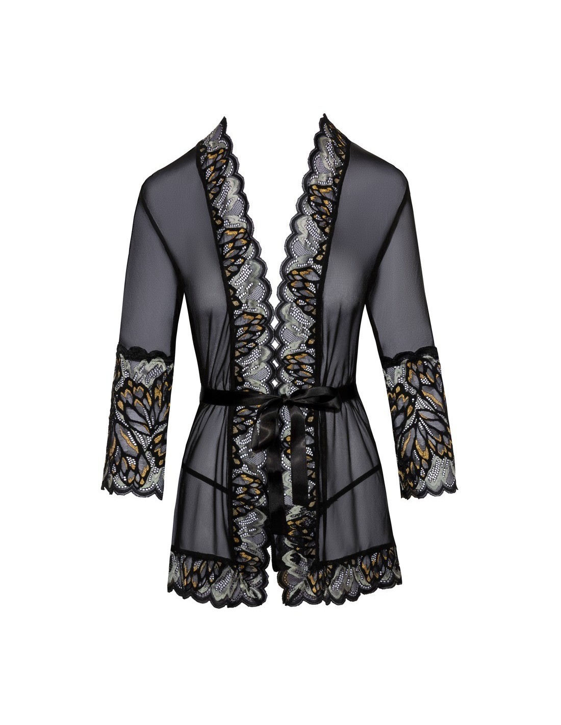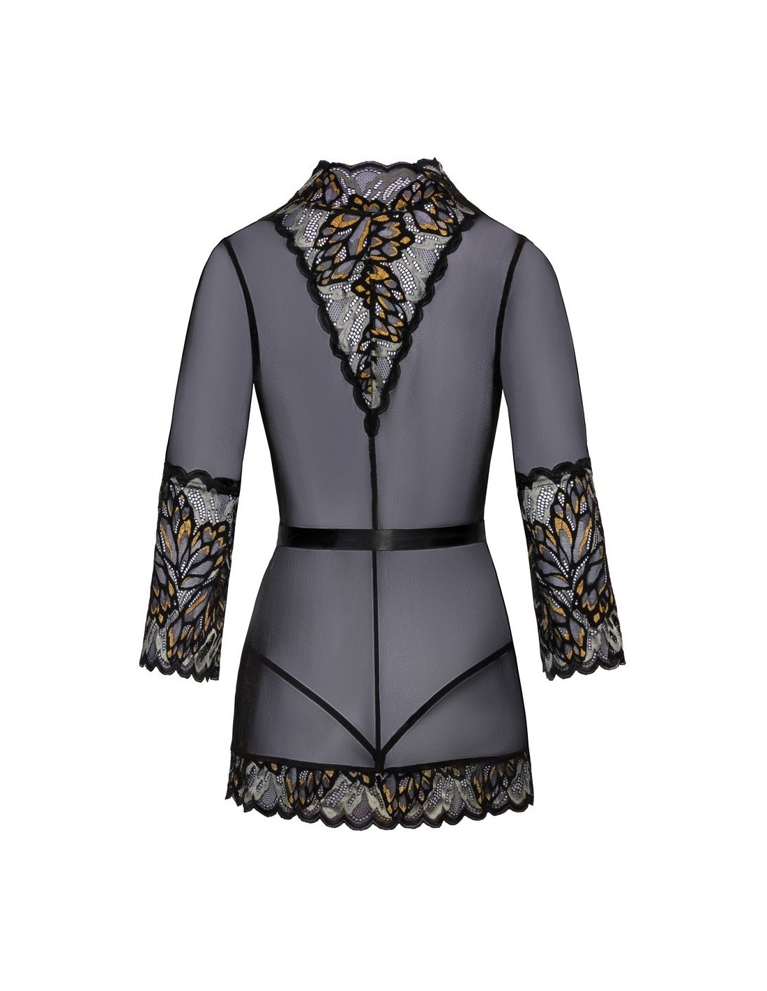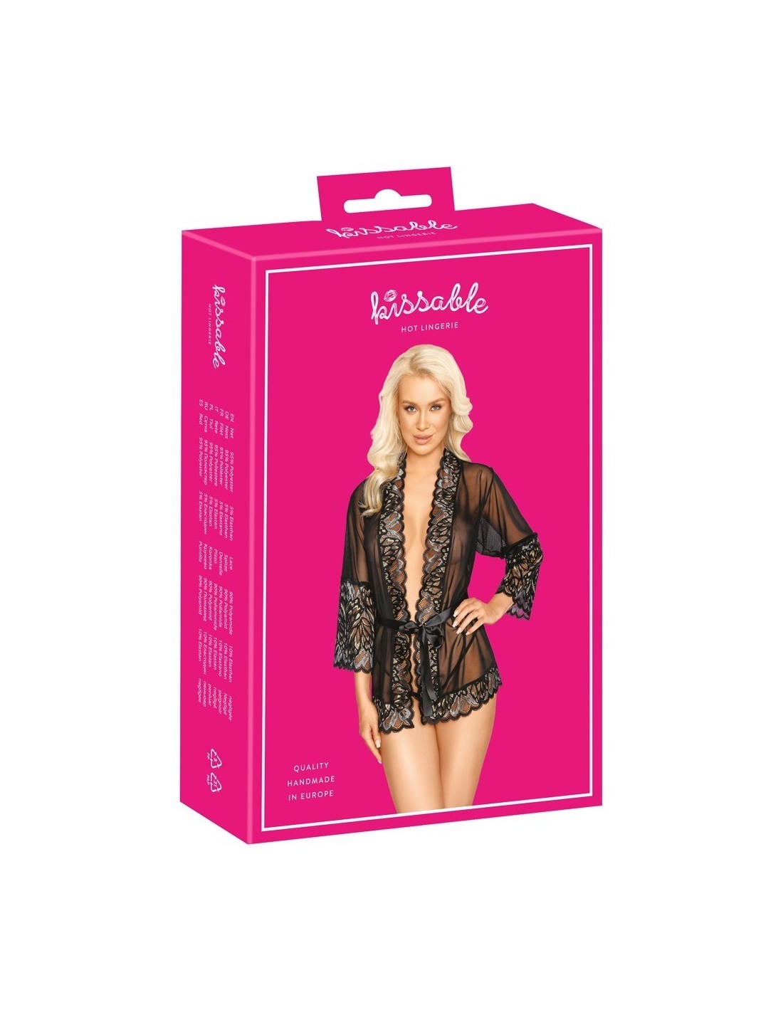 Babydoll corto, viola e nero. Svasato, con cristalli decorativi sotto il seno e le cinghie regolabili. Frangia con pizzo. Stringa con tassello incluso. Entrambi gli indumenti realizzati in tessuto viola con uno strato di pizzo. Materiale: 90% poliammide, 10% spandex.