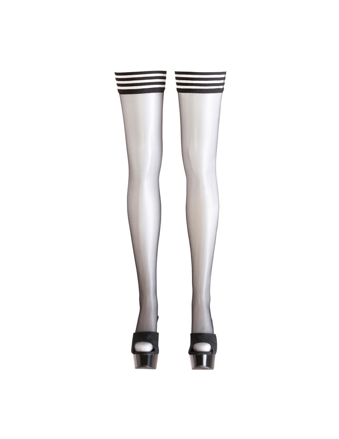 Calze realizzate in tessuto nero e decorate con strisce parallele , queste calze appartengono alla nuova collezione Cottelli , resistenti e facili da indossare grazie ad uno speciale rivestimento in silicone. • Materiale: Poliammide 90%, Spandex 10%