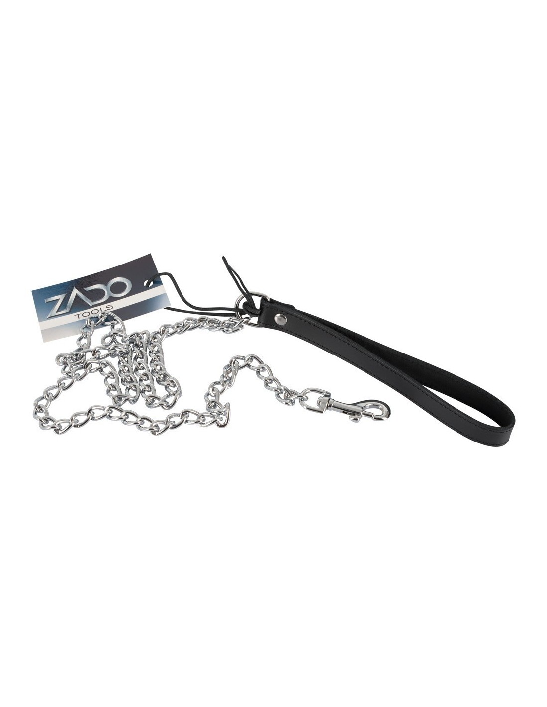 Gunzaglio bdsm Zado catena in metallo con impugnatura in pelle e cinturino in pelle nero (20 cm di lunghezza) . Lunghezza totale cm 110.
