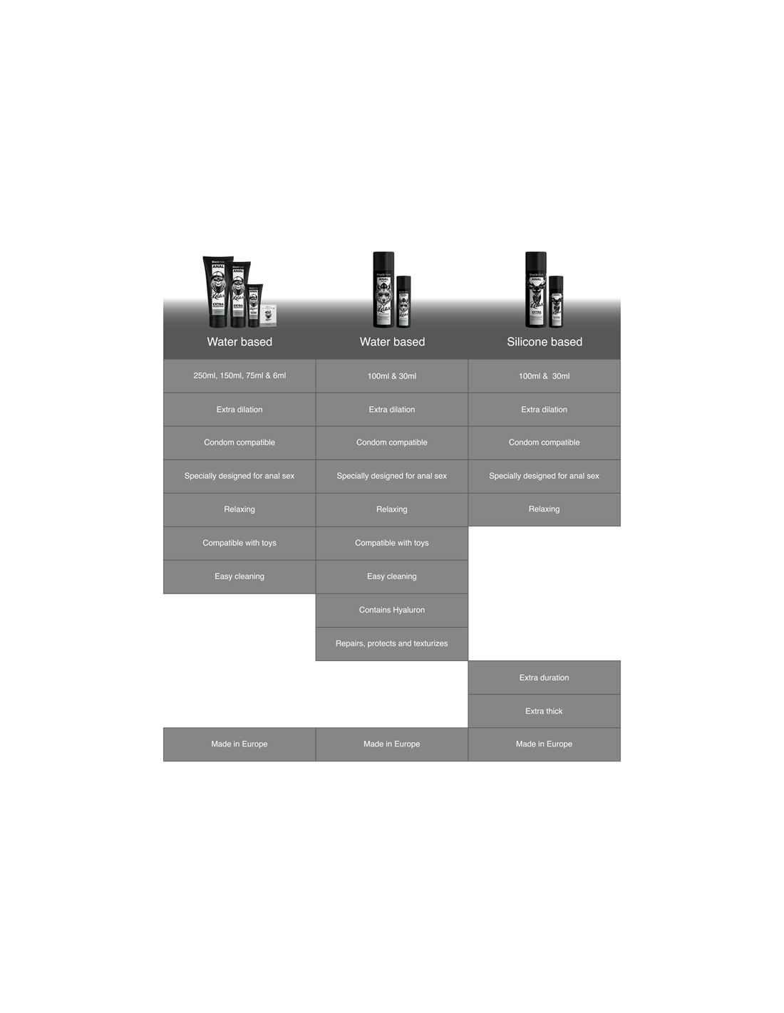 Black Hole, senza dubbio la opzione migliore, dilatante e rilassante, è qui. Appositamente progettato per la pratica dei rapporti sessuali anali, essendo il lubrificante dilatante per eccellenza. È un lubrificante anale di altissima qualità; consigliato sia a chi vuole iniziare a praticare il sesso anale sia agli utenti esperti. Molte coppie sono curiose, ma molti non osano provarlo... l'idea che possa provocare dolore spesso porta a metterlo da parte per paura. pratica, essendo uno dei più piacevoli. Caratteristiche: Alto potere rilassante e dilatante. Lubrificante a base d'acqua. Speciale per dilatazioni forti (es. Fisting). Compatibile con i preservativi. Incolore, inodore e insapore. Non unge. Formato: 30 ml. Black Hole Anal Repair con Hyaluron RIPARA, PROTEGGE E STRUTTURA Questo prodotto è stato sviluppato appositamente per il piacere anale. Grazie all'effetto leggermente anestetico, lo sfintere si rilassa efficacemente e garantisce così una penetrazione indolore senza perdita di sensibilità;. Massaggia semplicemente delicatamente nell'ano, lascialo riposare per un breve periodo e inizia la tua rilassata avventura d'amore anale. L'acido ialuronico è un ingrediente ampiamente utilizzato nei prodotti per la cura della pelle e per la salute in generale grazie alle sue proprietà benefiche. Idratazione profonda: l' acido ialuronico è noto per la sua capacità di trattenere grandi quantità di acqua nella pelle, il che aiuta a mantenerla idratata e dall'aspetto fresco e sano. Antirughe: Aumentando l'idratazione della pelle, l'acido ialuronico può aiutare a ridurre la comparsa di rughe e linee sottili, rendendolo un popolare ingrediente nei prodotti antietà. Texture leggera: i prodotti contenenti acido ialuronico hanno spesso una texture leggera e non grassa, che li rende adatti a diversi tipi di pelle , compresa la pelle sensibile e grassa. Applicazione versatile: l'acido ialuronico si trova in una varietà di prodotti, come sieri, creme, gel e maschere facciali, consentendo agli utenti per scegliere la formula più; adatta alle proprie esigenze. Compatibilità con altri ingredienti: l'acido ialuronico è compatibile con altri ingredienti comuni nei prodotti per la cura della pelle, come vitamina C, niacinamide e antiossidanti , rendendolo versatile e adatto all'uso in routine personalizzate di cura della pelle. Migliore elasticità: oltre a idratare l'acido ialuronico può migliorare l'elasiticità della pelle, aiutandola a sembrare più soda e tonica.Irritazione ridotta: delicato sulla pelle e può aiutare a ridurre irritazioni e arrossamenti, il che lo rende adatto a persone con pelle sensibile .Effetti a lungo termine: l'uso regolare di prodotti con acido ialuronico può fornire benefici a lungo termine per la salute e l'aspetto della pelle, aiutandolo a mantenerlo morbido, idratato e ringiovanito.Sicurezza: l'acido ialuronico è un ingrediente sicuro per la maggior parte delle persone e generalmente non provoca effetti collaterali gravi se applicato correttamente. La speciale composizione senza grasso del lubrificante è solubile in acqua e quindi può essere facilmente lavata con acqua, non ha coloranti e non lascia tracce, anche durante i momenti appassionati. Con una consistenza morbida e setosa che rende la pelle piacevole e con una copertura ottimale, Realax Black Hole Anal è l'ideale per fare l'amore in modo soddisfacente e senza preoccupazioni. Qualità prodotta in Europa! BLACK HOLE ANAL REPAIR Produciamo in base all'esperienza e all'importanza di provare cose nuove ed espandere i propri orizzonti sessuali. L'eterno argomento tabù, il sesso anale, è ormai socialmente accettabile ed è praticato normalmente da milioni di persone. È stato sviluppato questo lubrificante leggermente anestetizzante per facilitare l'inizio del rapporto anale.