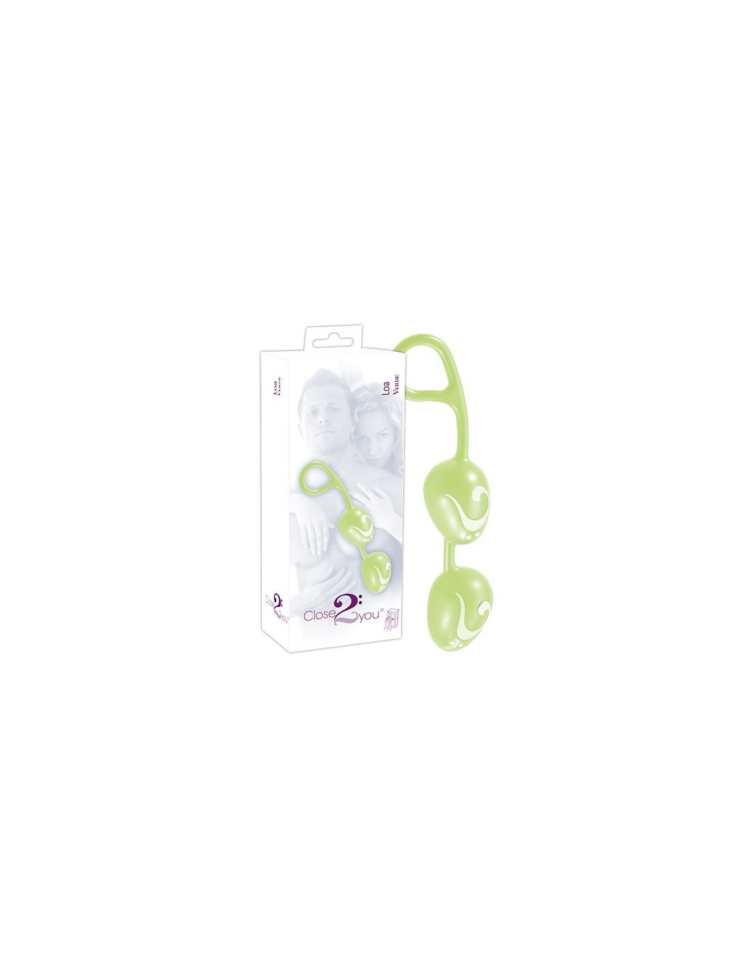 Le sfere del piacere, prodotte da Close2you, con anello di ritenuta sono il compagno ideale della stimolazione vaginale. Colore: Verdi. Lunghezza totale 17 cm, palle diametro 3,5 cm ciascuno. Materiale: TPR, ABS.