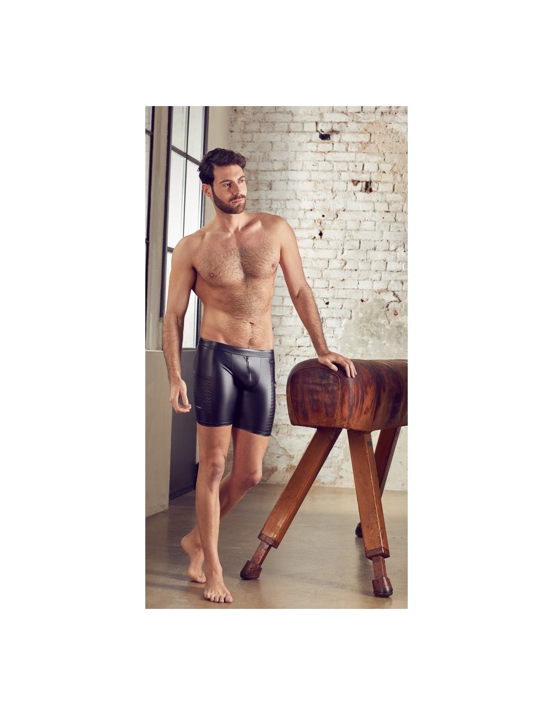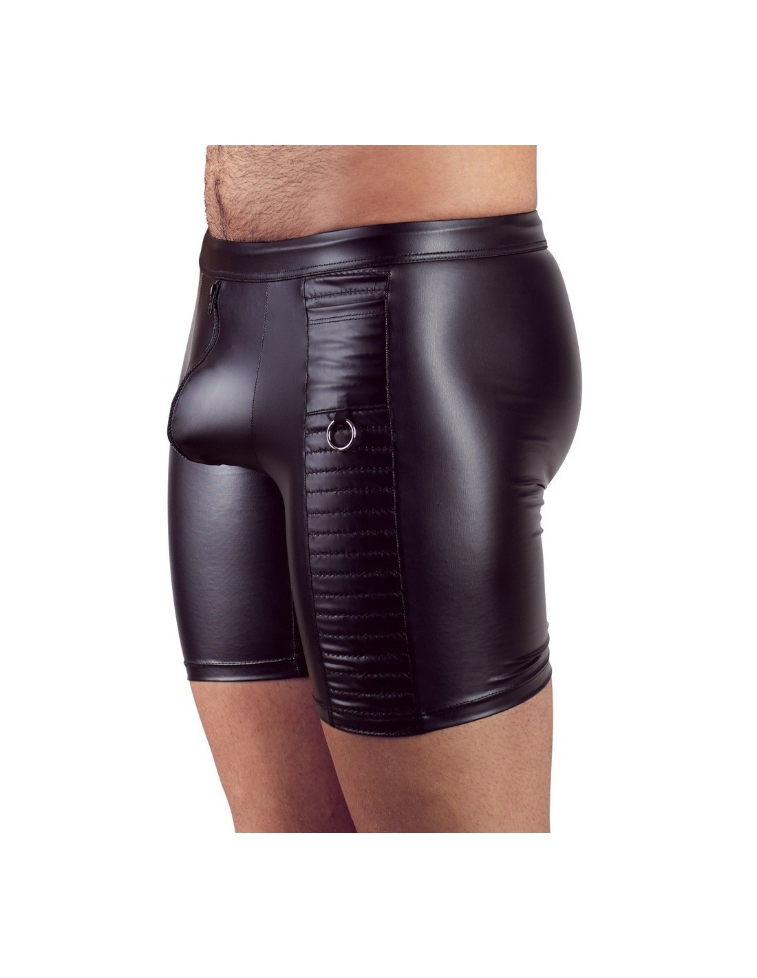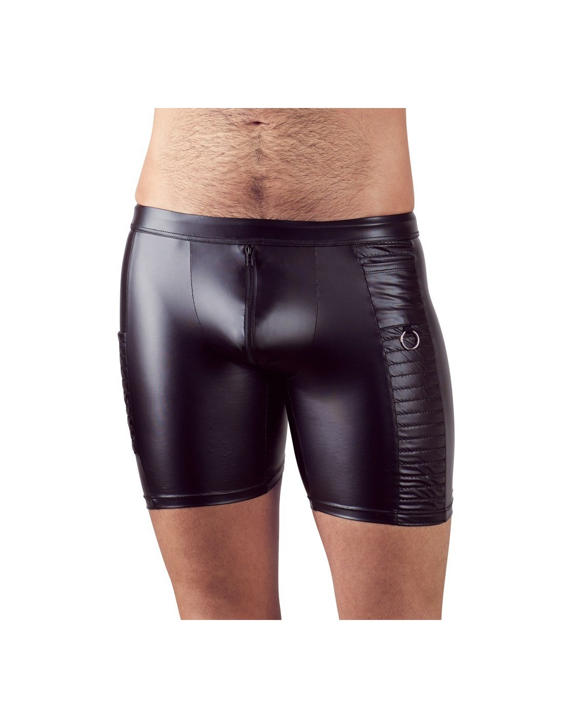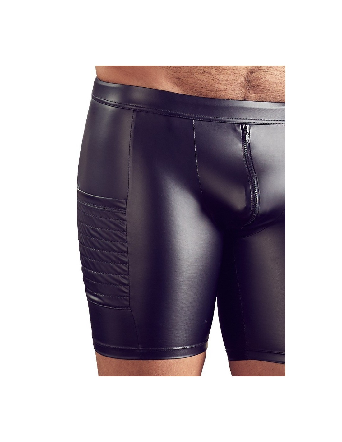 Il materiale aderente dall'aspetto opaco conferisce all'uomo una parte posteriore estremamente calda, mentre la zip imbottita sul davanti significa che l'azione calda può avvenire velocemente come un lampo. La pratica tasca laterale è cucita e fa si che sia possibile nascondere le cose anche quando il ragazzo è mezzo nudo. La preparazione è tutto!
