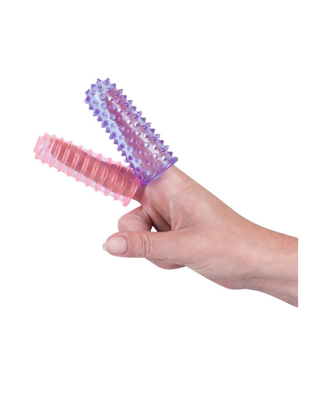 Set composto da due guaine da dito con rilievi stimolanti. Coccolarsi ed arrivare all'estasi è ancora più semplice, basta infilare sul dito queste morbide guaine stimolanti per godere di piaceri incredibili!