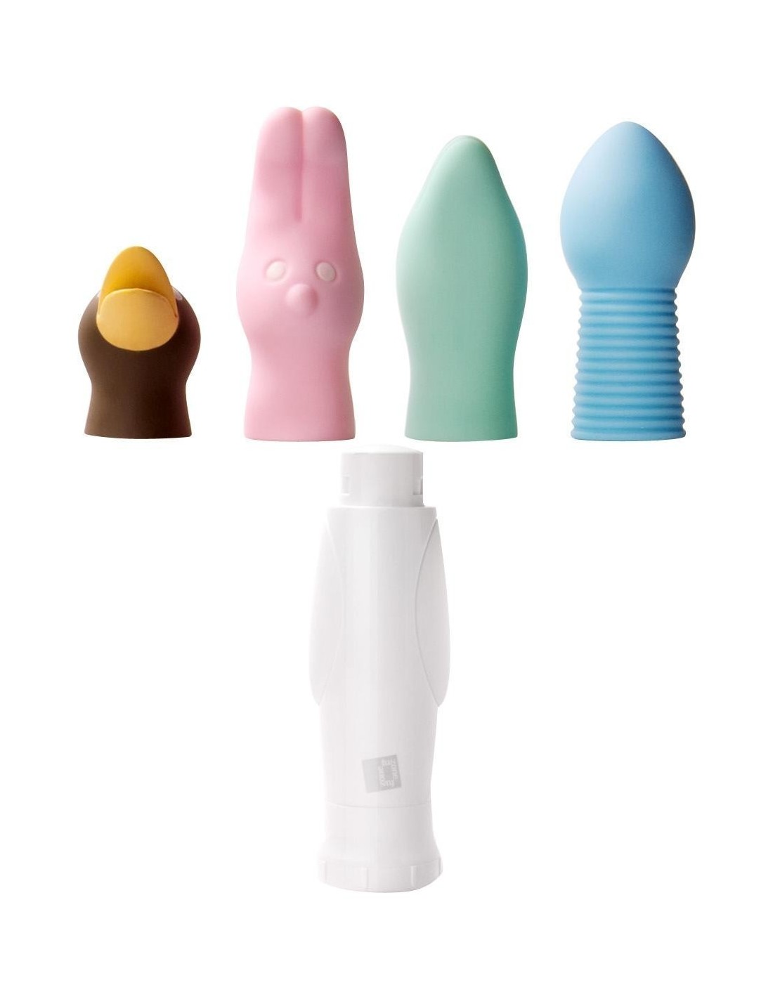 Un vibratore e quattro varianti di piacere. Basta applicare uno degli accessori dati in dotazione per stimolare ogni parte del vostro corpo come meglio credete. Forme studiate per la stimolazione del clitoride, punto G e ano.