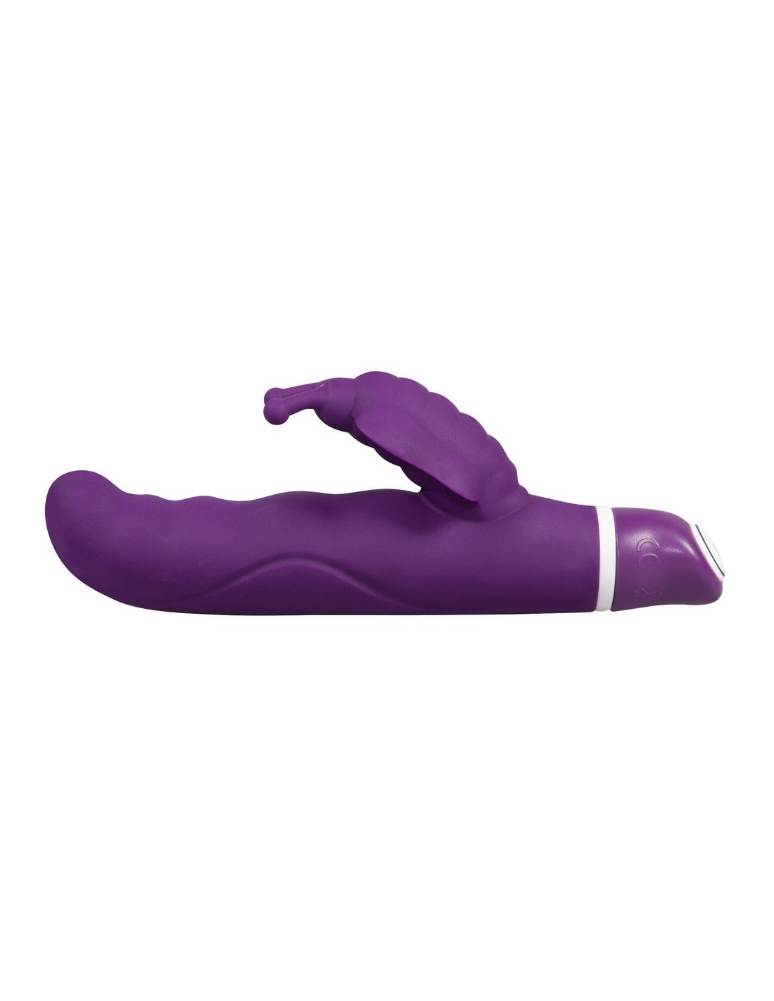 Un vibratore leggermente diverso! Vibratore con stimolatore a forma di farfalla. Con due Motori: uno a punta per il punto-G ed uno per il clitoride. I 7 tipi di vibrazione possono essere controllati premendo un pulsante. • Colore: Viola. • Lunghezza totale cm 15,5, inserimento profondità 8,5 cm, Ø circa 2,5 cm • Materiale: silicone, ftalati in conformità EU regolamento 1907/2006/CE. • Batterie non incluse: 2 x Micro/AAA