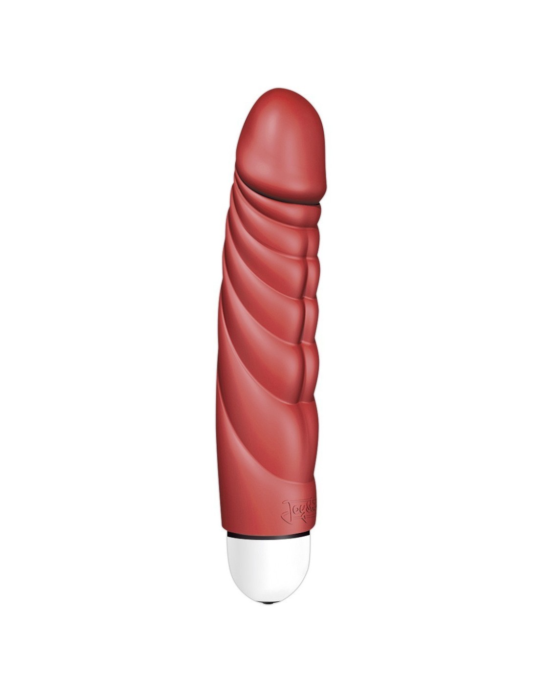 Vibratore con rilievi ad onda e con un glande pronunciato. Un tasto solamente per gestire tutte le sue funzioni, tra cui la selezione della velocità di vibrazione.