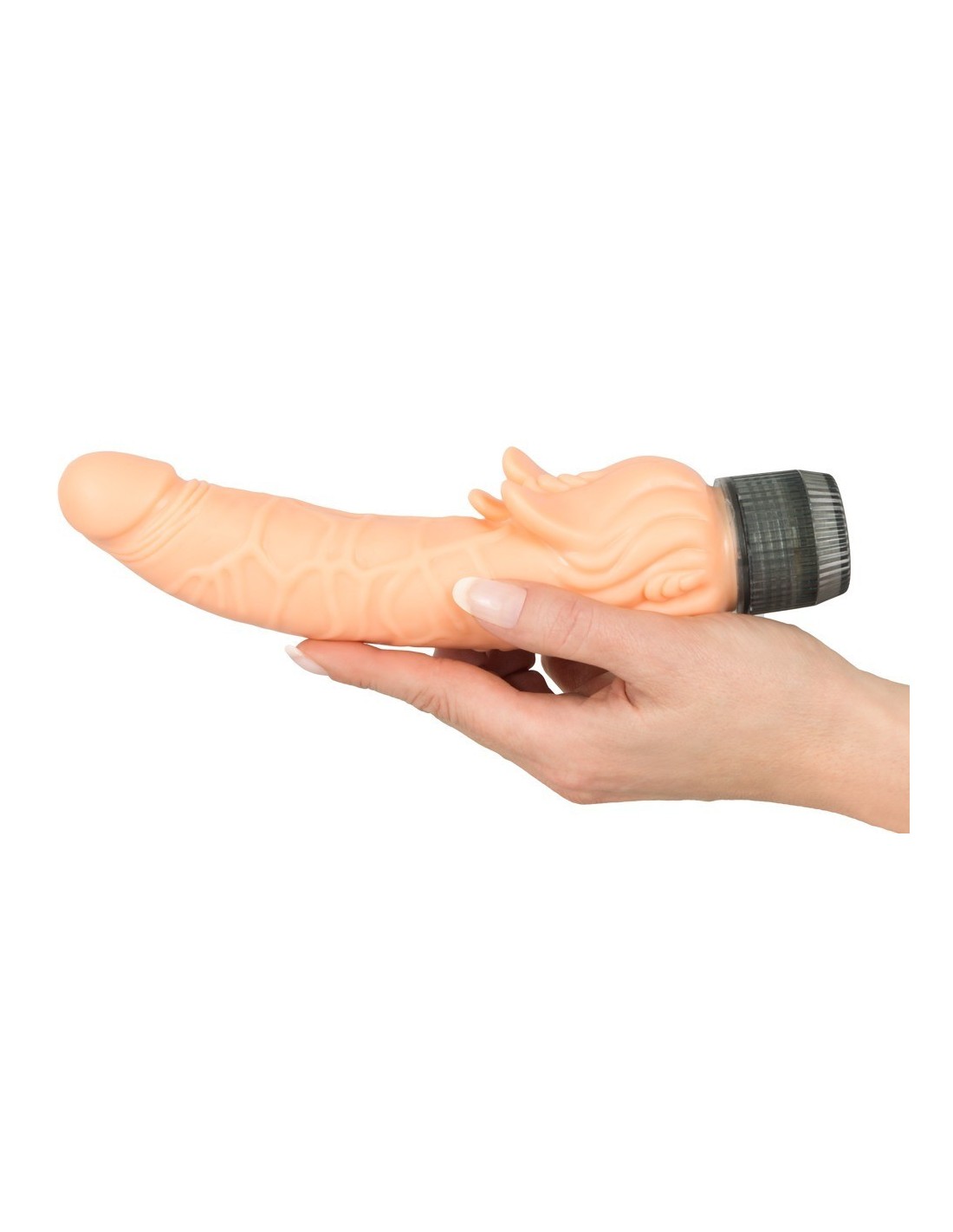 Forte vibratore color pelle con un tenero solletico al clitoride. Con vibrazioni a più velocità.